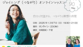 12月7日(日)に「ジョイニング(つながり)オンラインレッスン90min」を開催します!今年の6月からスタートしたワークショップも3回目となります。毎回、沢山の方がご参加くださり、本当にありがとうございます。90分という短い時間のワークショ...